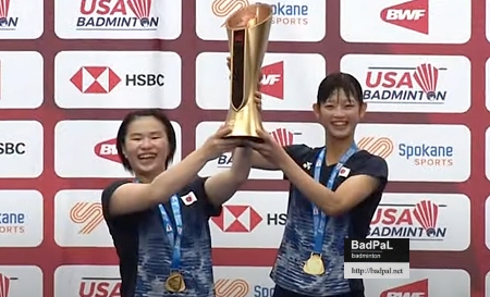 世界ジュニア選手権個人戦は8日、各種目の決勝が行われ、女子ダブルスの田口真彩・玉木亜弥が逆転勝ちで優勝した。銅メダル2つも日本勢が手にし、この種目、U19(19歳未満)世代の層の厚さを示した