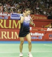 日本サッカーがデンマークに勝利した余韻の残る中、開催されたインドネシアオープン準々決勝。女子シングルスで廣瀬栄理子選手(世界ランク13位)がオランダのヤオ・ジエ選手(世界12位)をフルゲーム(21-19,10-21,22-20)の末に下し、準決勝進出を決めた。とりわけファイナルゲームは、16-20と先にマッチポイントを握られる苦しい展開だったが、地元観衆の応援も得て6連続ポイントで見事に逆転勝利を収めた 同じく女子シングルスで準々決勝に進んだ佐藤冴香選手(世界26位)は、香港のイップ・プイイン選手(世界15位)をファイナルゲーム(21-9,21-23,21-19)で破り、昨年の大会で記録したベスト8を上回るベスト4に入った また男子ダブルスでは、平田典靖・橋本博且組(世界15位)が世界1位、マレーシアのクー・ケンケット/タン・ブンヒョン組を逆転(13-21,21-19,21-18)で破る金星を上げた。