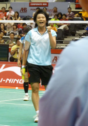 決勝の相手は、中国のルー・ラン選手を(8-21,21-17,21-8)で退けたインドのサイナ・ネワル選手。同選手は観衆からイン ドコールが沸き起こったファイナルゲーム、時折笑みを浮かべる余裕を見せ、試合後「ラリーをつなげることで相手のミスも誘えた」と述べ、落ち着いてプレーできたことを強調した