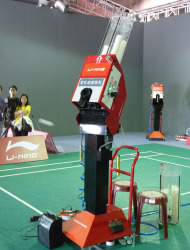 中国のブランド、李寧(LI-NING)が開発したシャトルランチャー。リモートコントロールでシャトルを自在に打ち出せる練習器具(2台のみ)がシンガポールにお目見えした
