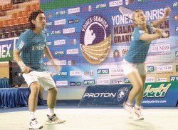 ジョホールバルで開催中のマレーシアグランプリ(GP)ゴールド。本戦2日目を終えて日本選手でベスト8入りを果たしたのは、女子シングルスの松友美佐紀選手、女子ダブルスの脇田侑・江藤理恵組、混合ダブルスの池田信太郎・潮田玲子組の合わせて3組。男子のシングルスとダブルスはすべて敗退した