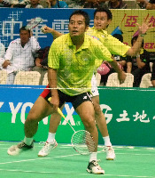 一方、前週に行われたマカオオープンGPの男子ダブルスで優勝した韓国のコ・ソンヒョン/ユ・ヨンソン組を、日本の実業団チーム、トナミ運輸でプレーしていたチャンドラ・ウィジャヤ選手がルルク・ハディヤント選手と組んだインドネシアのベテランペアがストレート(26-24,21-15)で撃破。存在を強烈にアピールした。スピーディーな試合展開に会場も大いに盛り上がった。 同組はあす、世界ランク1位で今大会第1シードのクー・ケンケット/タン・ブンヒョン組(マレーシア)と対戦する