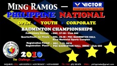 2004年以降毎年開催されている、ヨネックスの東南アジア代理店、サンライズ(シンガポール)の名前を冠に配した「ヨネックスサンライズ・フィリピンナショナルオープン」が唯一、ナショナル大会との位置付けにあった。しかし、ナショナルチームの用具提供スポンサーがヨネックスからビクターに代わったことでバドミントン協会がこの大会を「ナショナル」な大会と認定せず、今年はそれまで可能だったナショナルチームメンバーの参加を大会直前に禁じ、代わりにビクターの名を冠したまったく新しいナショナル大会の年末開催を急きょ立ち上げるなど、混乱が生じている
