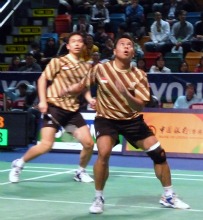 香港オープンSS準決勝、男子ダブルスでマルキス・キド/ヘンドラ・セティアワン組(インド ネシア、世界4位)とチョン・ジェソン/イ・ヨンデ組(韓国、世界7位)が対戦。1点を争う息詰まる接戦となるも、インドネシアペアが韓国ペアを21-19,23-21で退けた