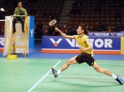 男子シングルスでは、ディフェンディングチャンピオンのリー・チョンウェイ選手(マレーシア)が、ブーンサック・ポンサナ選手(タイ)をストレート(21-17,21-18)で降し、決勝進出を果たした