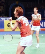 女子ダブルスのもう1つの試合は、地元台湾のチェン・ウェンシン/チエン・ユーチン組が、中国チェン・シュー/ツァオ・ユンレイ組とぶつかった。台湾ペアは会場の声援を受け終盤まで競って接戦に持ち込んだが、20-22,19-21で惜敗した