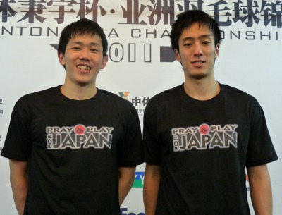 アジア選手権男子ダブルスで準優勝した平田典靖、橋本博且両選手が、24日の決勝戦を終えた後、BadPaL がアジアで実施している、3月11日東日本大震災の被災者支援活動「PRAY&PLAY for JAPAN」に快く協力してくれた