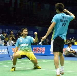 混合ダブルスは、コモンウェルス大会での優勝経験があるとはいえ、チン選手が「コーチに言われて驚いた」と語った通り、準備不足は明らかでストレートで敗れる。しかし男子ダブルスは十分に機能し、強固なレシーブ力を武器に、韓国のトップペア、チョン・ジェソン/イ・ヨンデ組(世界2位)をフルゲーム(21-15,14-21,21-14)の末に粉砕。男子シングルスのリー・チョンウェイ選手(世界1位)の1勝とともに、マレーシアが2-1と先に王手をかけた