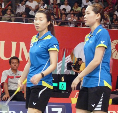 韓国とインドネシアの直接対決となった女子ダブルスでは、初の国際タイトル獲得を狙うインドネシアのグレイシア・ポリー/メイ リアナ・ジャウハリ組(世界8位)が韓国のキム・ミンジュン/ハ・ジュンユン組(世界7位)から第1ゲームを奪い、好調な滑り出しを見せる。第2ゲームも先行する展開で17-15とリードするが、ここから韓国ペアが挽回し18-17と逆転に成功。いったんは18-18と追い付かれるも、最後は3連続得点で振り切った。ファイナルゲームは、韓国ペアが2-0とリードしたところでインドネシアペアが棄権し、あっけない幕切れとなった