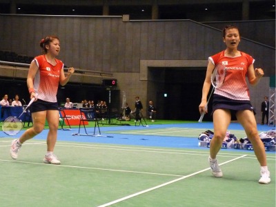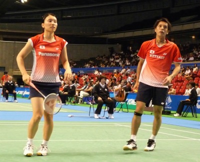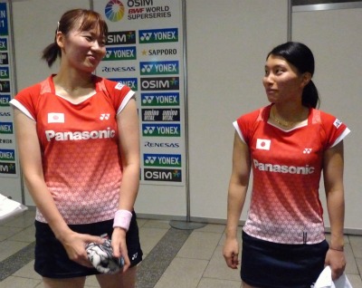 女子ダブルスでは、藤井瑞希・垣岩令佳組(世界4位)が第1ゲームを奪われる苦しい立ち上がりとなったが、続く第2、第3ゲームを取り返し逆転勝ち。松尾静香・内藤真実組(世界7位)は堅実なプレーの韓国ペアを相手に、冷静な試合運びで順当に勝利した