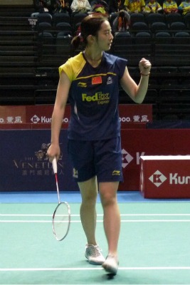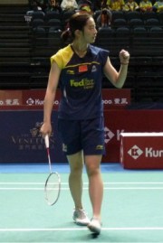 【女子シングルス】 ワン・シーシャン(中国、世界2位)〈21-14,21-14〉ハン・リ(中国※予選勝ち上がり)