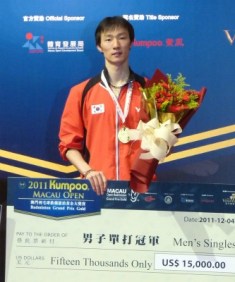 マカオオープンGPゴールド決勝、韓国のベテラン、イ・ヒョンイル選手が、中国のドゥ・ペンユ選手を退け、昨年の復帰以来初めて国際大会で優勝を飾った。今年はスイスオープンGPゴールド(3月)とタイオープンGPゴールド(7月)の準優勝が最高成績だった
