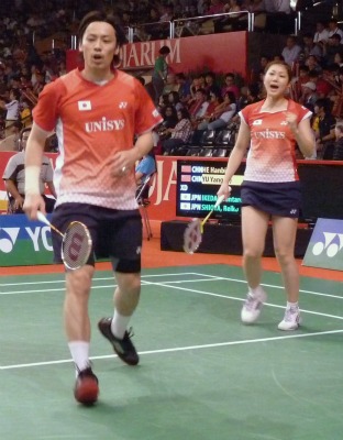 In Women’s Doubles, the underdog Ayaka TAKAHASHI/Misaki MATSUTOMO shines Gold upsetting higher-ranked rivals, Satoko SUETSUNA/Miyuki MAEDA (21-18,17-21,21-16) in Semis and Shizuka MATSUO/Mami NAITO (21-16,21-12) in Final