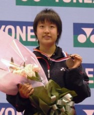 In Women’s Singles Final, she won the match against defending champion Eriko HIROSE by default due to Eriko’s poor physical condition, following upset victories over Sayaka SATO (23-25,21-16,21-16) in Quarters and Minatsu MITANI (21-16,14-21,21-9) in Semis