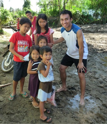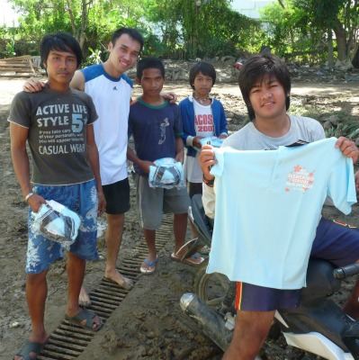 今回、米倉加奈子プロジェクトから託された支援物資のシャツは、BadPaL がこの日訪れた数カ所の被災地域で、協力要請を快諾してくれたカガヤンデオロ出身のフィリピンナショナルチームの元メンバー、イアン・メンデス氏によって直接、多くの子どもたちに手渡された。ちなみに同氏の家族も被災しており、招かれた家の壁には大人の身長を上回るところまで水かさが増した痕跡が生々しく残り、家の前に停めてあるバンの車内は汚泥があふれたままだった