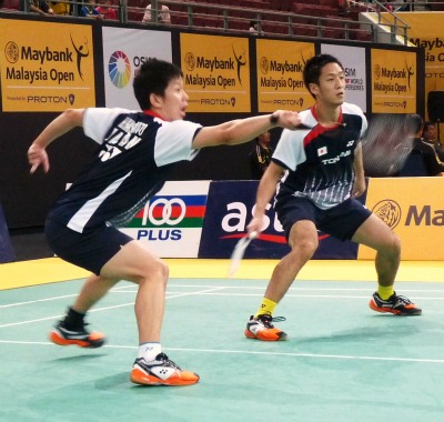 男子ダブルスも、平田典靖・橋本博且(世界8位)、佐藤翔治・川前直樹(世界10位)、早川賢一・遠藤大由(世界13位)の3組すべてが2回戦に進んだ。とりわけ早川・遠藤組は世界4位の韓国コ・ソンヒョン/ユ・ヨンソン組を接戦(19-21,21-18,21-19)の末に下す金星を挙げた