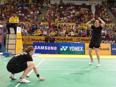 【女子ダブルス】 キム・ミンジョン/ハ・ジョンウン(韓国、世界3位)〈19-21,18-21〉クリスティナ・ペダーセン/カミラ・リタ・ユール(デンマーク、世界10位)