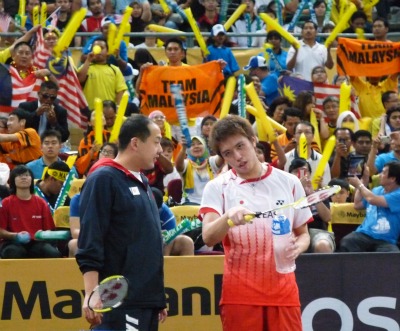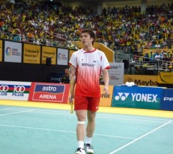 マレーシアオープンSS決勝、男子シングルスの田児賢一選手が、地元のスター、世界ランク1位のリー・チョンウェイ選手に挑んだが完敗。3度目のSSタイトルへの挑戦は、またも準優勝に終わった