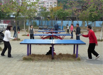 一方、中国らしく、羽毛球館の目の前の屋外運動公園には、全天候型の卓球台が4台据え付けられ、ラケットとボールさえ持参すれば、こちらは無料で、老若男女を問わずいつでも気軽に卓球を楽しめる環境が整っている。この地で地元のメディアに話を聞くと、バドミントンより卓球の方が人気が高いという声を多く聞いたのは、この辺りにも要因があるのかもしれない