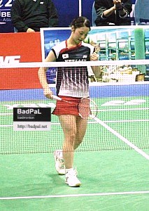 第1ゲームを奪うも、第2ゲームを競り負け、迎えたファイナルゲーム前半、3-8と大きくリードされるが、ここから粘りを見せ9連続得点で逆転に成功すると、チームメイトの高まる声援を背に、世界ランクのほぼ同じサプシリー・テラッタナチャイ選手を振り切った