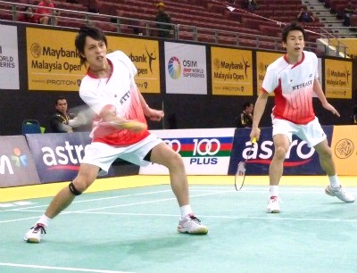 一方、日本3番手の早川賢一・遠藤大由組は、準々決勝で平田典靖・橋本博且組を下した台湾のエースペア、ファン・チエミン/リー・シェンム組に対し、第1ゲームは終盤、4連続得点を許して落とす。第2ゲームは序盤から主導権を握るも15-15で追いつかれ一進一退の展開に。最初のマッチポイント(19-20)をしのぎ逆にゲームポイント(21-20)を奪い返すも決め切れず、21-23で力尽きた