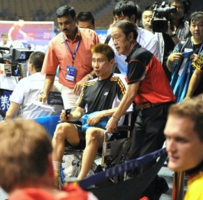 この日最大のドラマは、トマス杯(男子)のデンマーク対マレーシアで起こった。第1シングルスに登場したマレーシアのエース、世界ランク1位のリー・チョンウェイ選手が、デンマークのベテラン、ピーター・ゲード選手との試合開始からわずか数分後、2-1とリードした場面で右足首を痛めて棄権。そのまま車いすに乗せられ病院に直行したのだ