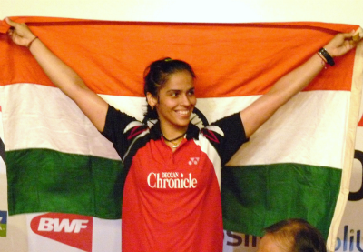 女子シングルスは、インドのサイナ・ネワル選手が、この種目中国最後の砦、世界ランク上位のリ・シュエリ選手と対戦。過去1勝4敗と分の悪い相手で、第1ゲームを一方的な展開で奪われる。第2ゲームは先行するが、18-14としたところから6連続得点を与えてしまい、18-20と逆にマッチポイントを握られる。しかし「この場面でも負けるとは思っていなかった」と試合後語った通り、ねばり強くプレーを続けて相手のミスも誘い、4連続得点でこのゲームを取り返す。ファイナルゲームに入っても双方譲らず一進一退の攻防が続くが、観衆を味方につけたネワル選手が14-14からわずかに抜け出し、こちらも最後まであきらめずに追いかけてきたリ選手を21-19で振り払った