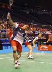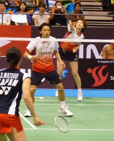 シンガポールオープンSS準決勝、混合ダブルスの池田信太郎・潮田玲子組が、佐藤翔治・松尾静香組との同国対決を制し、日本勢としてこの種目初の決勝進出を決めた