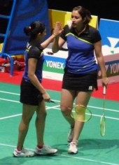 ネワル選手に続くのが、女子ダブルスのジュワラ・グッタ/アシュワニ・ポンナッパ組。世界ランクは2ケタにとどまっているものの、ロンドン五輪と同じ会場ウェンブリーアリーナで1年前に開催された世界選手権で、末綱聡子・前田美順組と並んで銅メダルを獲得している