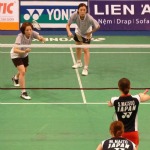 馬上・下﨑組は、第1ゲームを落とした後、第2ゲームを取り返して迎えたファイナルゲーム、実績、実力ともに上の松尾・内藤組に序盤からリードを許すと、点差を広げられ先に19点を握られる。しかしここから攻撃にリズムが出て、相手のミスも誘い徐々に点差を縮めていき追い付くと、最後は1点を取り合う形となり、23-21でナショナルチームペアに競り勝った