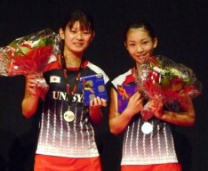 混合ダブルスはロンドン五輪銀メダル、第1シードのシュー・チェン/マー・ジン組(中国)が、第4シードのタントウィ・アーマド/リリアナ・ナッチル組(インドネシア)に第2ゲームを奪われながらも最後は快勝。1月の韓国オープンSSプレミア、9月のチャイナマスターズSSに続く、今年3勝目を挙げた