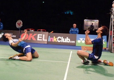 男子シングルスは、ロンドン五輪銀メダルのリー・チョンウェイ選手(マレーシア)が、昨年決勝で敗れたチェン・ロン選手に勝って上がってきたドゥ・ペンユ選手(中国)と対戦。ドゥ選手が積極的に攻撃を仕掛け第1ゲームを先取。リー選手が第2ゲームを取り返し、試合はファイナルゲームへ。ファイナルでもドゥ選手が健闘を見せ最後まで食らいついていくが、デンマークでも人気のリー選手は、観客も味方につけ21-19で振り切り、30歳の誕生日を自らの勝利で祝った