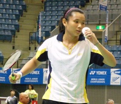一方、今大会にエントリーした全選手の中で最も世界ランクの高い台湾の18歳、タイ・ツーイン選手(世界11位)が、一次リーグ第2試合から早くも登場。オーストラリアのナターシャ・シャープ選手(世界305位)を寄せ付けず、所要時間18分、21-6,21-10のストレート勝ちで格の違いを見せた