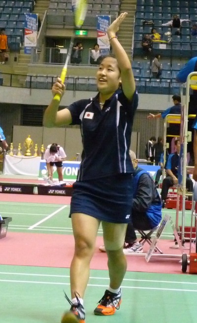 奥原選手:「アジアジュニア選手権でも対戦している相手だが、今の自分の状態では負けてもおかしくない。男子ダブルスが予想に反してファイナルゲームまでいったので、女子シングルスでもたつくとチームの雰囲気が悪くなると思い、気持ちを入れてやった」