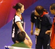 ダブルスとは対照的に、日本の女子シングルス陣にとってこの日は厳しい結果が待ち受けていた。フレンチオープンSS優勝の三谷美菜津選手の相手は、世界ランク1位のワン・イーハン選手。昨年の香港オープンで1度だけ対戦し、18-21,22-20,16-21で惜敗しており、この試合ではリベンジを狙っていた。第1ゲーム、先行するワン選手を三谷選手が追いかける形で進む。終盤、17-20と先にゲームポイントを握られた状態から19-20まで追いつくが、一歩及ばずこのゲームを落とす。第2ゲームもリードするワン選手に三谷選手が離されずについていき、中盤、10-11と1点差に迫る。しかし10-12となったところで三谷選手が主審に右ひざの不調を訴え、小休止の間、コーチや世界バドミントン連盟(BWF)役員を交えてしばらく言葉が交わされた後、三谷選手の棄権が宣告された