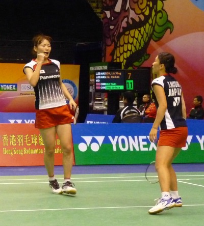 香港オープンSS準々決勝、ここまで勝ち進んだ日本勢の中で、女子ダブルスの松尾静香・内藤真実組と男子シングルスの田児賢一選手が勝利し、準決勝に残った