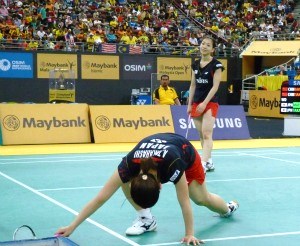 男子ダブルスでは、韓国イ・ヨンデ/コ・ソンヒョン組が国際大会5連続優勝を狙ったが、北京五輪金メダルのベテラン、ヘンドラ・セティアワン選手とロンドン五輪出場のモハンマド・アーサン選手が組むインドネシアペアに歯が立たず、ストレート負け。昨年12月以降、韓国オープングランプリ(GP)ゴールド(5勝)、インドインターナショナルチャレンジ(4勝)、インドオープンGPゴールド(5勝)、韓国オープンSSプレミア(5勝)と続いてきた国際大会での連勝記録は23で止まった
