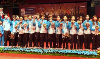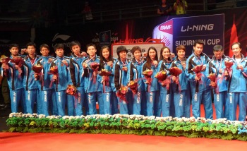 男女混合国・地域別対抗戦スディルマン杯決勝、中国が韓国を寄せ付けず、女子シングルスと女子ダブルスを温存したまま3対0で完勝した。2005、07、09、11年と4連覇中の王者、中国は今大会、とりわけ準々決勝のインドネシア戦で混合ダブルスと男子ダブルスを落とし追い詰められるなど、ここ数年見られなかった苦しい戦いを強いられた。しかし結局、大会5連覇、通算9度目の優勝を成し遂げ、前回までの優勝の立役者でロンドン五輪金メダリストのベテラン、リン・ダン選手やカイ・ユン/フー・ハイファン組抜きでも世界のトップに立てることを証明。バドミントン王国の揺るぎない強さを見せつけた