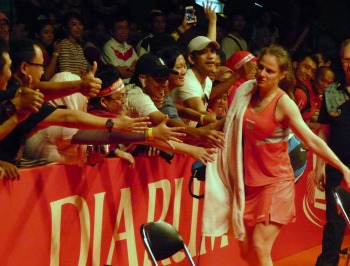 インドネシアオープンSSプレミア準決勝、女子シングルスでドイツのユリアン・シェンク選手がこの大会、2009、10、12年と3度の優勝をほこるインドのサイナ・ネワル選手に逆転勝ちし、決勝進出を決めた。ドイツバドミントン協会(DVB)との確執から、ナショナルチームを離れる決断を下すに至った、ここ数週間に起きた出来事を踏まえ、シェンク選手は試合後、開口一番、「今の感情を表現するのは難しい」と述べた上で、今もサポート、応援してくれる国内外の人に対する感謝の言葉を口にした