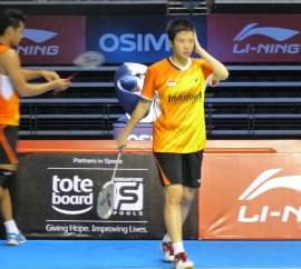 【男子ダブルス】 イ・ヨンデ/コ・ソンヒョン(韓国、世界1位)〈15-21,18-21〉ヘンドラ・セティアワン/モハンマド・アーサン(インドネシア、世界7位)