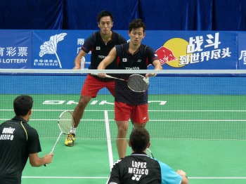 男子ダブルスは、平田典靖・橋本博且組が格下のメキシコペアを寄せ付けずに快勝。一方、いずれもシードペアとの対戦となった混合ダブルスでは、早川賢一・松友美佐紀組が世界ランク14位のデンマークペアにストレート勝ちし3回戦に進んだが、橋本博且・前田美順組は世界6位のインドネシアペアから第1ゲームを奪うも逆転で敗れ、明暗が分かれた