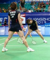 女子ダブルスの末綱聡子・前田美順組は、過去一度も勝ったことがない韓国ペアと対戦。第1ゲームは相手に渡った流れを止めることができず、チャンスらしいチャンスを作れぬまま9-21と押し切られる。第2ゲームも主導権を握られるが、離されずについていき16-16で追いつく。さらに1点のリードを許すが再び追いつき、流れは日本ペアに移ったかに見えた。しかし次の1点が取れず、連続失点により敗退。前回2011年大会の銅メダリストは、厳しい組み合わせとなった今大会、目標としてきた世界1位、中国ユー・ヤン/ワン・シャオリ組の待つ準々決勝に進めなかった