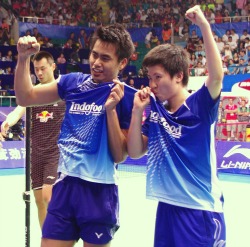 残る2種目はインドネシアが制した。混合ダブルスでは、タントウィ・アーマド/リリアナ・ナッチル組が、準決勝のロンドン五輪金メダリスト、ツァン・ナン/ツァオ・ユンレイ組に続いて、この日は今大会第1シードのシュー・チェン/マー・ジン組と、中国のトップペアを連破。急きょ会場に駆け付けたインドネシアバドミントン協会(PBSI)会長が見守る中、インドネシアにとって2007年以来4大会ぶりの世界選手権優勝を果たした。ナッチル選手は、現在コーチを務めるノバ・ウィディアント氏と組んだ混合ダブルスで優勝した2005,07年に続く、3度目のタイトル獲得となる