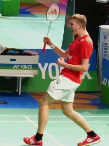 この日、最も会場を沸かせたのは、地元出身のビクター・アクセルセン選手が格上のドイツ、マーク・ツイブラー選手を下した試合。この試合のためだけにテレビカメラが複数設置され、地元ヒーローの勝利の瞬間をとらえた。アクセルセン選手はあすの2回戦で、世界ランク1位のマレーシア、リー・チョンウェイ選手に挑む