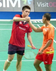 【男子シングルス】 田児賢一(世界4位)〈16-21,18-21〉ソニー・ドゥイ・クンチョロ(インドネシア、世界15位)
