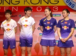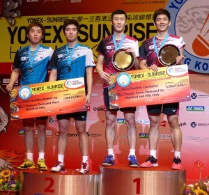 韓国同士の対戦となった男子ダブルス決勝は、準決勝で世界チャンピオン、インドネシアのヘンドラ・セティアワン/モハンマド・アーサン組を破ったイ・ヨンデ/ユ・ヨンソン組が勝利。このペアでは香港オープン初載冠ながら、イ・ヨンデ選手はロンドン五輪後に引退したチョン・ジェソン氏とのペアで2008年と09年、ユ・ヨンソン選手はコ・ソンヒョン選手と組んで2010年に、それぞれ優勝している