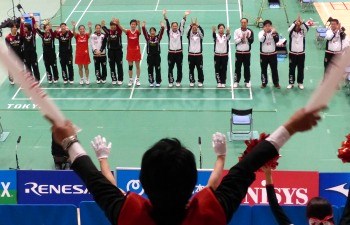 最終戦では男女とも、ポイントゲッターの第1ダブルス、早川賢一・遠藤大由組、高橋礼華・松友美佐紀組が敗れる波乱のスタート。しかし、シングルスの坂井一将、高橋沙也加両選手がそれぞれファイナルゲームまでもつれる接戦をものにして後ろにつなぐと、第2ダブルスの数野健太・井上拓斗組と栗原文音・篠谷菜留組がきっちり仕事をこなして、2010年以来のアベック優勝を飾った