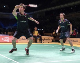 男子ダブルスでは日本から唯一、早川賢一・遠藤大由組が勝ち残った。対戦相手のオランダペアとは、2人がペアを組み始めた時、何度か練習試合をしたことがあり、当時は勝ったり負けたりだったという。しかしこの日は、日本ペアが攻守ともに圧倒。まったく危なげない試合運びで21-9,21-8と完勝した。早川選手は試合後、BadPaL に対し、「前衛がうまいので、そこをつぶしていくことを心がけた」と述べた。遠藤選手は、「自分たちの出来は良かったと思 う。あえていうならレシーブの精度がもう1つ。改善の余地あり」と指摘した。次戦の相手は、順当にいけば第1シード、インドネシアのヘンドラ・セティアワン/モハンマド・アーサン組だったが敗れ、台湾のツァイ・チアシン/リー・シェンム組となった。この点について遠藤選手は「インドネシアペアと再戦したかったので残念」とコメント。一方、早川選手は「台湾ペアには勝ったことがない」とし、決して気が抜けない相手であることを強調した