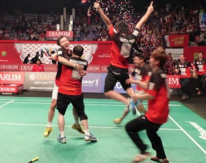 ジャヤラヤは続く第1ダブルスも、北京五輪金メダルのマルキス・キド/ヘンドラ・セティアワン組で取り、2対0として初優勝に王手をかける