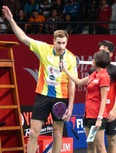 ただ、ムシカチャンピオンの第3シングルスは、4位に終わったロンドン五輪後に韓国代表から退いたものの、プロとして競技活動を続ける33歳のベテラン、イ・ヒョンイル選手。華麗なフットワークは健在で、ジャヤラヤのウィスヌ・ユリ・プラセトヨ選手を難なく下し、チームを連覇に導いた